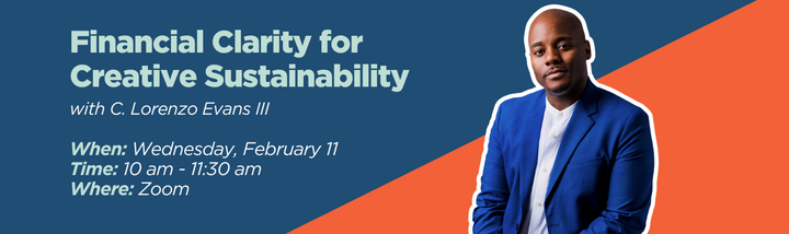 ArtsFund is pleased to host one 60-minute follow-up office hour session for drop-in attendance. This session is intended to be an unstructured conversation, guided by your questions. Attend to ask your specific questions and learn from C. Lorenzo Evans III and your peers. Please note that attendance at the Financial Clarity for Creative Sustainability workshop is not required to join this unstructured conversation, but having at least watched the recording of the session in advance of the office hours will help ensure we can make the best use of that time.
