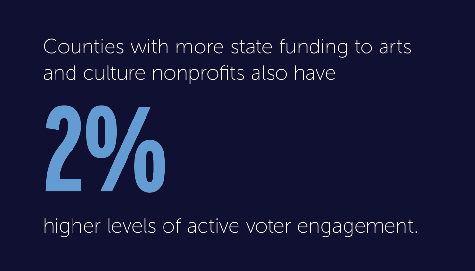It’s possible that in rural areas, where arts resources are generally fewer and more dispersed that the incremental value of additional investment is particularly noticeable for and impactful for community members.