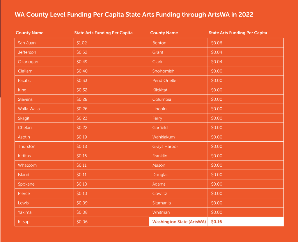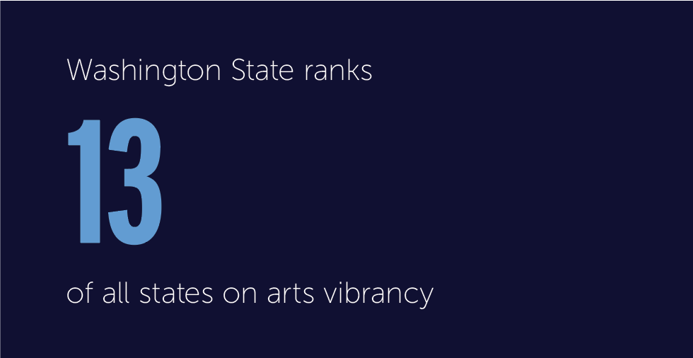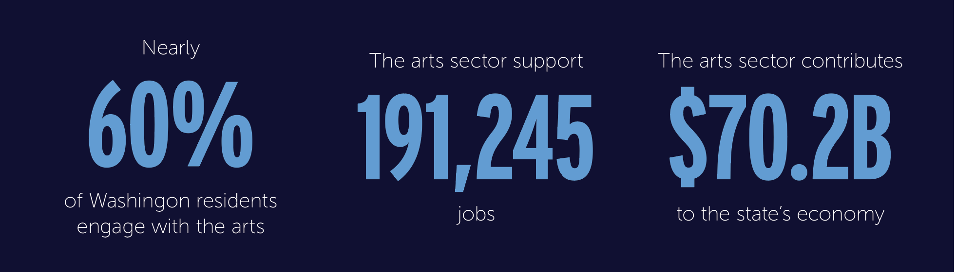 According to a report by the Washington State Arts Commission (2020), nearly 60% of Washington residents engage with the arts in some capacity. The arts sector is also a vital economic driver, supporting 191,245 jobs (ranked 6th among all states) and contributing $70.2B (ranked 3rd) to the state’s economy. This broad impact underscores the arts role in shaping both daily life and long-term prosperity for Washington residents.