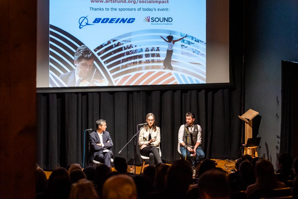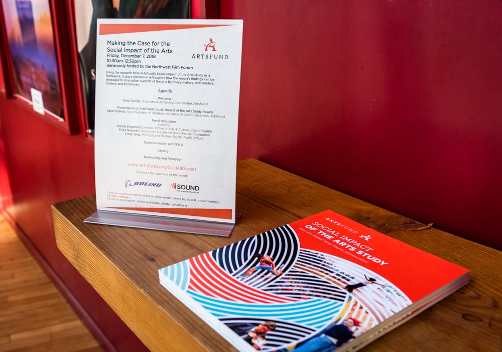 Upon conclusion of the report findings, panelists Randy Engstrom, Director of the Office of Arts & Culture at the City of Seattle; Erika Nesholm, Executive Director of the Nesholm Family Foundation; and Sung Yang, Partner and Principal at Pacific Public Affairs and ArtsFund board member, joined the discussion. The panelists shared what they think are effective ways to use the information to empower organizations in their own work. Nesholm advised attendees to start with their boards, making sure they can speak to why the work the organization does matters in the broader community. Engstrom emphasized the importance of storytelling and applying your organization’s work to a hyper-local level. Yang reiterated the importance of creativity to the business community how that is crucial to fueling the economy.