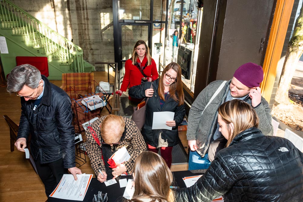 Attendees check in at Northwest Film Forum