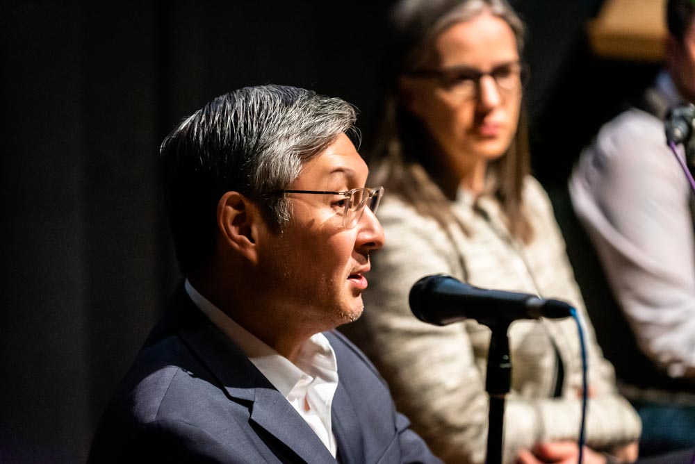 Panelist, Sung Yang (L) answers a question from the audience while panelist, Erika Neholm (R) looks on