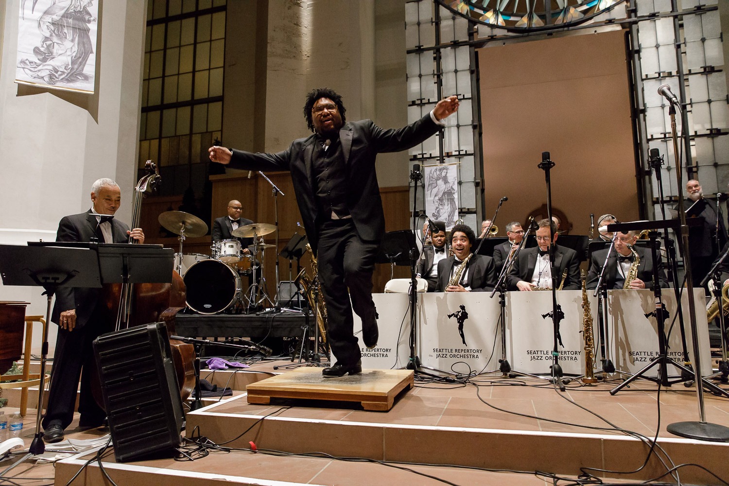Duke Ellington’s wonderful “Sacred Music” is both serious and swinging. It is a reverent and hip body of jazz composition, written late in his career, for jazz big band, vocal and instrumental soloists, gospel choir, and tap dancers. For the past 31 years Earshot Jazz has presented an annual concert of Duke Ellington’s Sacred Music except this year we’re going all-digital with a mix of archive footage from previous concerts and some newly filmed small ensemble recordings. The concert will feature our co-presenter the Seattle Repertory Jazz Orchestra, along with local guest vocalists, and a choral ensemble.
