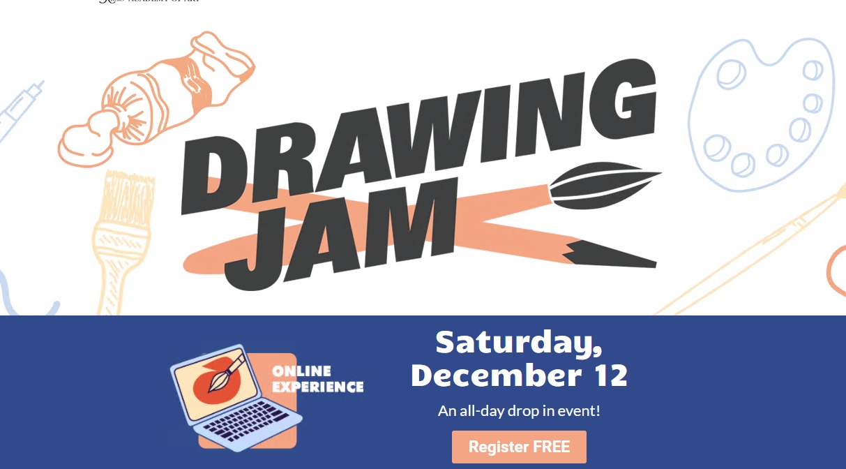 This year, Drawing Jam will be an entirely LIVE VIRTUAL EVENT held on Saturday, December 12th. Throughout the day, attendees will log into the online event platform and will be able to check out a variety of global artist demos, art panels, live model drawing, and more, all from the comfort of the attendee’s home. The free event will be family-friendly and open to all ages from kids to teens to adults. Fun times & Global Art for all!