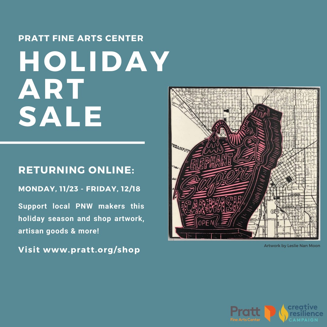 Pratt is bringing the beloved Holiday Art Sale back! Through a new, Pratt-hosted, multi-seller platform, artists can sell their own works, wares, and holiday gifts with unlimited inventory and a slick shopper interface. The sale will be a great way for artists to increase sales and for shoppers to buy local NW art this holiday season.