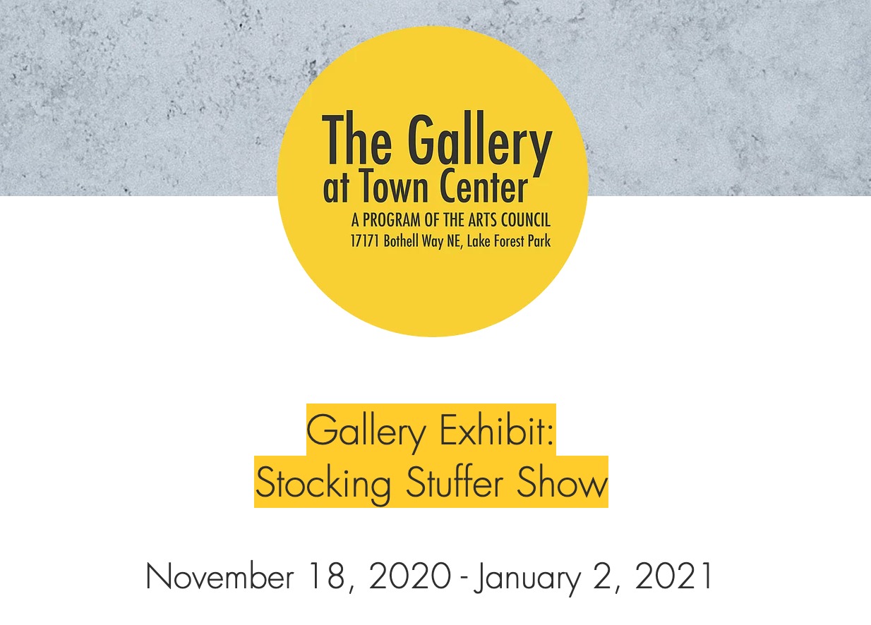 Shop this holiday season and support you local art organization at the same time! The Gallery at Town Center has a large selection of handmade art items by Pacific Northwest artists, including jewelry, ceramics, glass, fiber, and wood. We are always on the lookout for new and interesting inventory. Stop by and discover our most recent finds. On the walls will be 12″x12″ (or smaller) paintings, mixed media, prints, and photography – the perfect gift size. Plus, boxes and bags are available for most small items helping to make your gift-wrapping a snap.